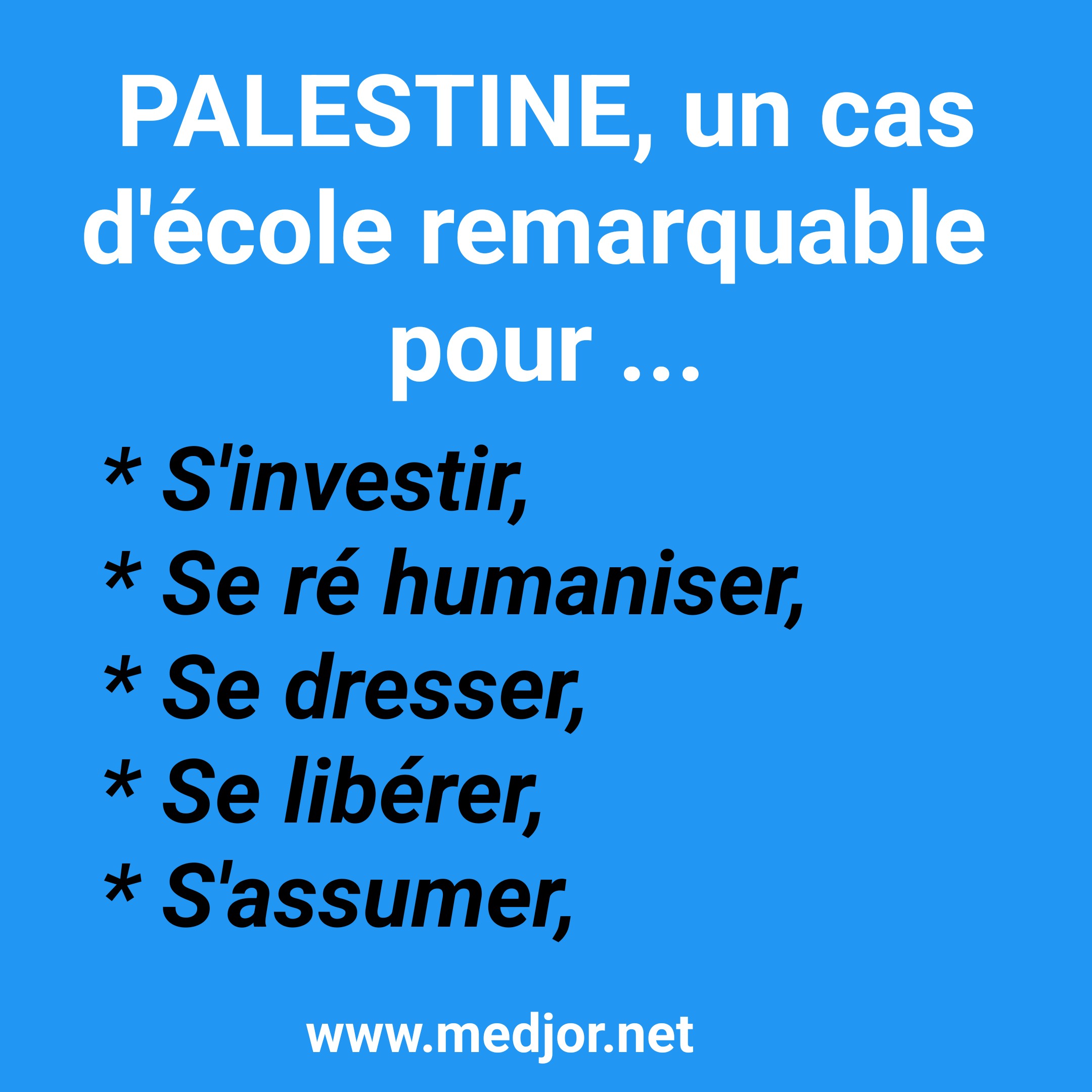 De les mettre en œuvre sur le cas Palestine vous donnera la force de le faire dans le cadre de votre vie.  Cela s’apparente à sauver son âme en nettoyant devant sa porte…