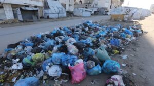 L’incapacité de la municipalité à dégager les déchets vers la décharge de Juhr Al-Deek, à l’est de la ville,